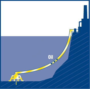 Deep-sea conveying equipment on the sea floor currently extracts oil at depths down to 3,000 meters. This oil is then pumped directly onto ships or on land via underwater pipelines.